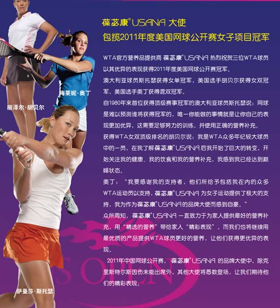 葆苾康?USANA大使包攬2011年度美國網(wǎng)球公開賽女子項目冠軍