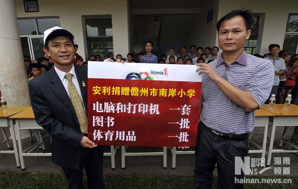 26日,安利海南分公司的志愿者在儋州市新洲鎮(zhèn)南岸村南岸小學(xué)開(kāi)展節(jié)前助學(xué)送溫暖活動(dòng),為南岸小學(xué)的300多名學(xué)生送去了電腦、圖書(shū)、體育用品等學(xué)習(xí)用具,并和學(xué)生們一起唱紅歌、做游戲。