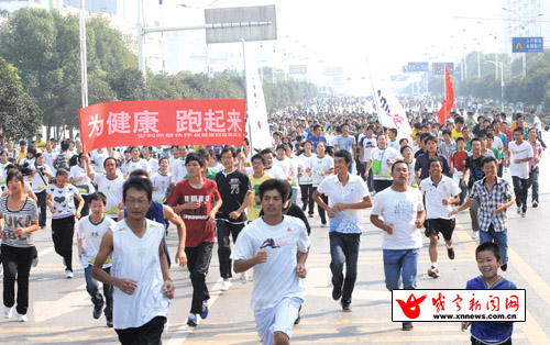 9月24日清晨,由咸寧市文體新局和本報聯(lián)合主辦的2011安利紐崔萊健康跑咸寧站在咸寧體育中心舉行,近萬人的健康長跑隊伍掀起了今年我市全民健身活動的高潮。