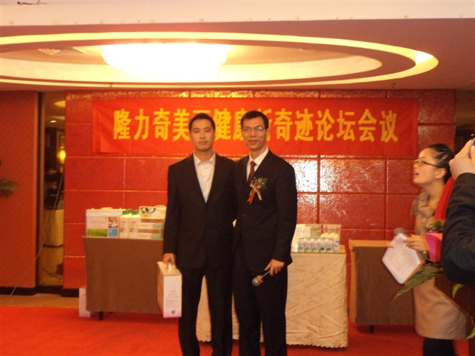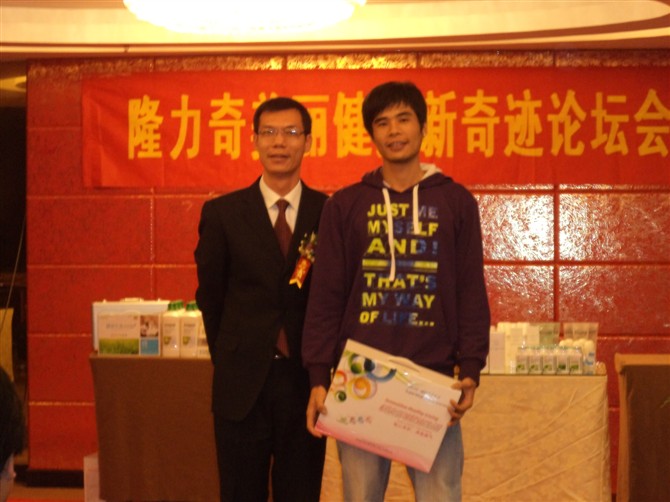 隆力奇福建分公司總經(jīng)理何民先生分別與兩位現(xiàn)場報單VIP會員合影