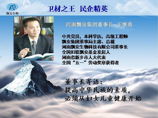 公司占地面積36萬(wàn)平方米,注冊(cè)資金2億元,職工5100余人,其中碩士25人,大中專(zhuān)以上工程技術(shù)人員1680人。集團(tuán)公司下設(shè)河南飄安高科股份有限公司、新鄉(xiāng)市非織布衛(wèi)材有限責(zé)任公司、新鄉(xiāng)市無(wú)紡布有限責(zé)任公司、新鄉(xiāng)市消毒有限責(zé)任公司、長(zhǎng)垣縣醫(yī)用衛(wèi)材有限責(zé)任公司5個(gè)控股子公司 ,并設(shè)立了一個(gè)飄安集團(tuán)與美國(guó)恒保的合資公司。集團(tuán)主導(dǎo)產(chǎn)品脫脂紗布、脫脂棉、一次性無(wú)紡制品、醫(yī)療器械設(shè)備、生物材料制品、醫(yī)用高分子共6大板塊50多個(gè)系列500多個(gè)品種,產(chǎn)品國(guó)內(nèi)市場(chǎng)占有率48%以上,且已出口到歐美等國(guó)家。