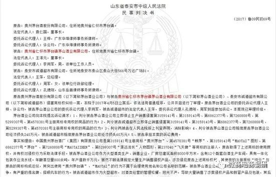 2017年4月5日,貴州茅臺(tái)酒股份有限公司將貴州省仁懷市茅臺(tái)鎮(zhèn)茅山酒業(yè)有限公司告上法庭。事實(shí)和理由是:中國貴州茅臺(tái)酒廠(集團(tuán))有限責(zé)任公司是第3159141號(hào)注冊(cè)商標(biāo)“貴州茅臺(tái)”、第4570381號(hào)“賴茅”、第3159143號(hào)“MAOTAI”圖形、第6862377號(hào)“茅臺(tái)”、第7260808號(hào)“MAOTAIZHEN”、第5299307號(hào)“源遠(yuǎn)流長(zhǎng)”人物圖形、第237040“飛天牌”等商標(biāo)的注冊(cè)人,取得了上述商標(biāo)的使用授權(quán),并有權(quán)對(duì)侵權(quán)行為采取法律手段。茅山酒業(yè)公司作為大型酒類生產(chǎn)、銷售企業(yè),居然不顧法律規(guī)定大量生產(chǎn)銷售侵權(quán)產(chǎn)品,涉及侵犯貴州茅臺(tái)酒股份有限公司的上述商標(biāo)權(quán)利,其使用的注冊(cè)商標(biāo)與茅臺(tái)酒的商標(biāo)構(gòu)成近似,其突出使用“貴州茅臺(tái)鎮(zhèn)”、“MAOTAI”的行為不屬于合理使用地名和公司名稱的范疇,茅山酒業(yè)公司的侵權(quán)行為同時(shí)涉及不正當(dāng)競(jìng)爭(zhēng),有嚴(yán)重的傍名牌、搭順風(fēng)車的行為。貴州茅臺(tái)酒為中國白酒第一品牌,在世界上享有盛譽(yù),由于特有的生態(tài)環(huán)境、獨(dú)有的配方、工藝、加上科學(xué)的管理,大力的推廣和營銷投入,深受消費(fèi)者歡迎和信賴,多次被評(píng)為特優(yōu)商品,第一批獲得國家馳名商標(biāo)的十家單位之一,在白酒行業(yè)全國市場(chǎng)名列前茅,而茅山酒業(yè)肆意妄為的侵權(quán)行為違反了《商標(biāo)法》等法律規(guī)定,嚴(yán)重侵犯了權(quán)利人的合法權(quán)益,更影響了“國酒茅臺(tái)”在世人心中的地位。涉案產(chǎn)品的侵權(quán)行為嚴(yán)重影響了貴州茅臺(tái)酒的品牌、品質(zhì)形象,給貴州茅臺(tái)酒股份有限公司的經(jīng)濟(jì)利益造成很大的沖擊,侵犯了其商標(biāo)權(quán)、構(gòu)成不正當(dāng)競(jìng)爭(zhēng),應(yīng)承擔(dān)法律責(zé)任。