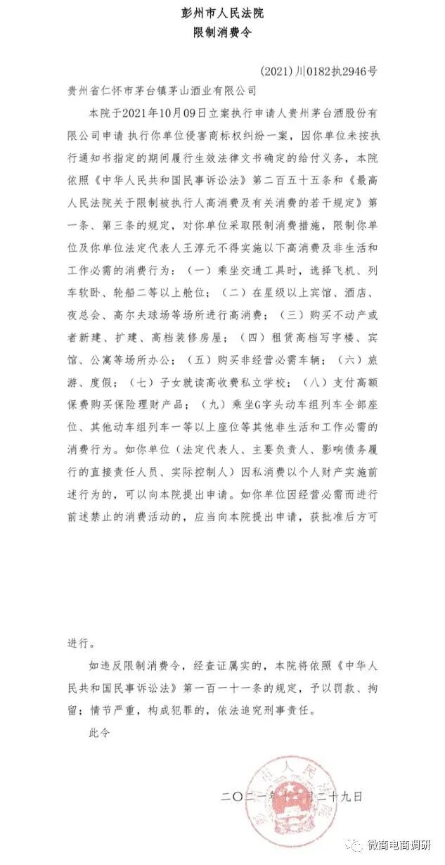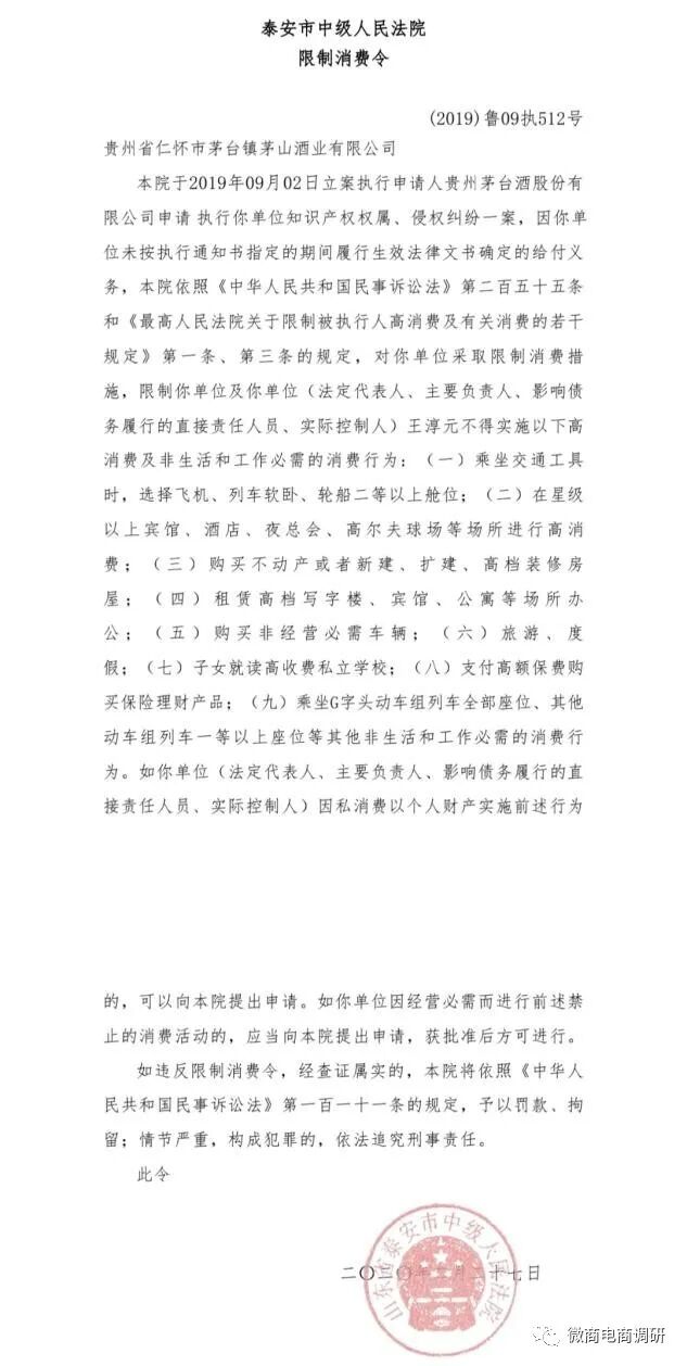 但貴州省仁懷市茅臺(tái)鎮(zhèn)茅山酒業(yè)有限公司卻并未履行裁決文書判令的給付義務(wù),因此兩次被法院限制高消費(fèi)并被列為失信被執(zhí)行人。