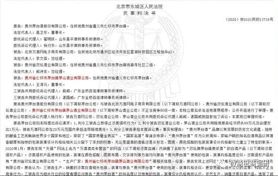 2021年,貴州茅臺(tái)酒股份有限公司又向法院提起訴訟請(qǐng)求,請(qǐng)求判令北京萬酒網(wǎng)電子商務(wù)有限公司、貴州省雙壇酒業(yè)有限公司和貴州省仁懷市茅臺(tái)鎮(zhèn)茅山酒業(yè)有限公司立即停止涉案侵權(quán)行為;判令被貴州省雙壇酒業(yè)有限公司和貴州省仁懷市茅臺(tái)鎮(zhèn)茅山酒業(yè)有限公司共同賠償經(jīng)濟(jì)損失99萬元及合理支出1萬元,北京萬酒網(wǎng)電子商務(wù)有限公司在20萬元范圍內(nèi)承擔(dān)連帶賠償責(zé)任。