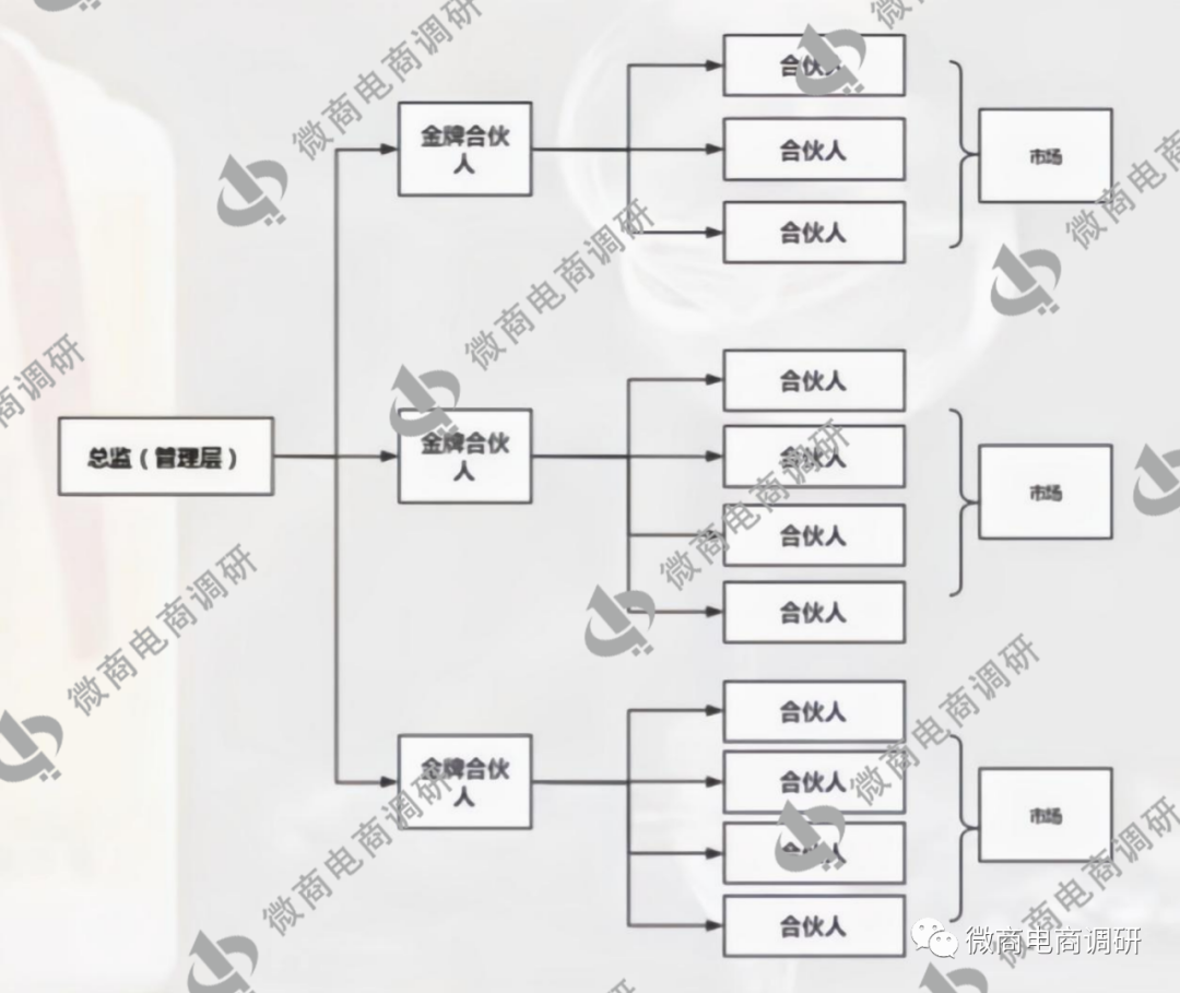 總監(jiān):直推三個(gè)金牌合伙人或一次性購買產(chǎn)品金額達(dá)到1794元可成為總監(jiān)??偙O(jiān)除了可以獲得直推收益以外還有金牌收益,總監(jiān)推薦的合伙人升級(jí)為金牌合伙人,總監(jiān)可獲得30元/人的金牌收益,總監(jiān)推薦的金牌合伙人升級(jí)為總監(jiān),原總監(jiān)可獲得300元/人的金牌收益??偙O(jiān)還有額外的總監(jiān)管理費(fèi),即總監(jiān)傘下團(tuán)隊(duì)所有人售出商品,總監(jiān)都可以獲得收益。