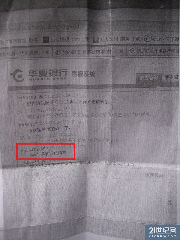 而在投訴客戶出示的聊天記錄截圖顯示,11月26日,華夏銀行官網(wǎng)客服人員亦承認(rèn),中鼎相關(guān)理財(cái)產(chǎn)品“是我行代銷的”。
