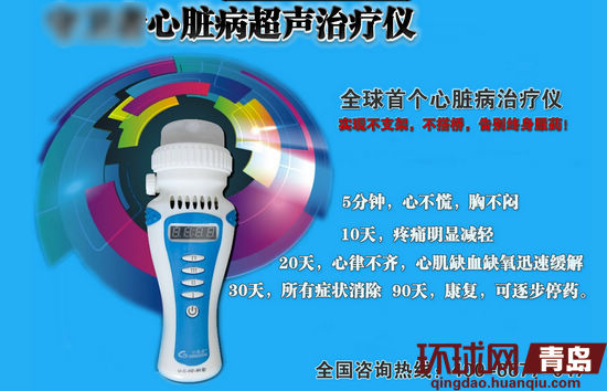 宮女士對環(huán)球網(wǎng)青島頻道記者說, 10月22日她被確診為心臟病。10月23日,翻閱報紙時看到某超聲波治療儀的大篇幅廣告,該治療儀聲稱“不求醫(yī)院,不服藥,在家治好心臟病?!彪m然該儀器的售價高達1600余元,但宮女士看到治療儀宣稱的“4到10天接觸心絞痛,60到120天徹底康復(fù)”還是決定暫暖住院,寄希望于該治療儀。當(dāng)天,宮女士的丈夫根據(jù)報紙上刊登的地址,在青島同仁堂威海路店買了一臺。