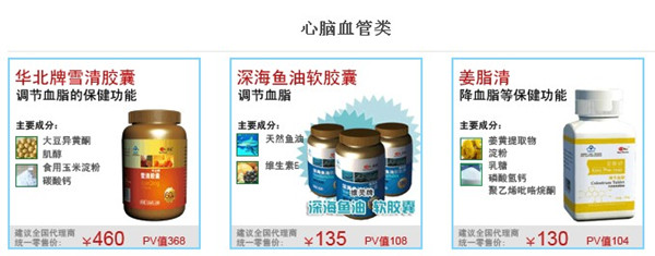 登錄大連易健產(chǎn)品網(wǎng)站,看到易健的產(chǎn)品有"免疫調(diào)節(jié)類、氣血補充類、強壯骨骼類潤腸通便類、心腦血管類"等十二類單品產(chǎn)品六類組合產(chǎn)品。隨意點擊"心腦血管類",顯示"華北牌雪清膠囊"等四款產(chǎn)品(見截圖),打開雪清膠囊網(wǎng)頁,圖片上醒目的標示著"華北牌雪清膠囊--調(diào)節(jié)血脂的保健功能",衛(wèi)生許可證號:冀衛(wèi)食證字(2009)第130000411002號,是"食字號"而非"健字號"或者"藥字號"。文字介紹部分內(nèi)容:"雪清膠囊是以大豆異黃酮、肌醇、碳酸鈣為主要原料,采用現(xiàn)代生物萃取技術(shù)和現(xiàn)代檢測手段,從天然植物中提取,有效活性成分更高,其中大豆異黃酮含量高達90%,吸收更快。經(jīng)常服用可起到保護心臟、調(diào)節(jié)血脂、保護血管、延緩衰老的保健功效",詳細內(nèi)容見圖。至于其他產(chǎn)品的宣傳內(nèi)容,有興趣的朋友可以登錄易健網(wǎng)站查詢。