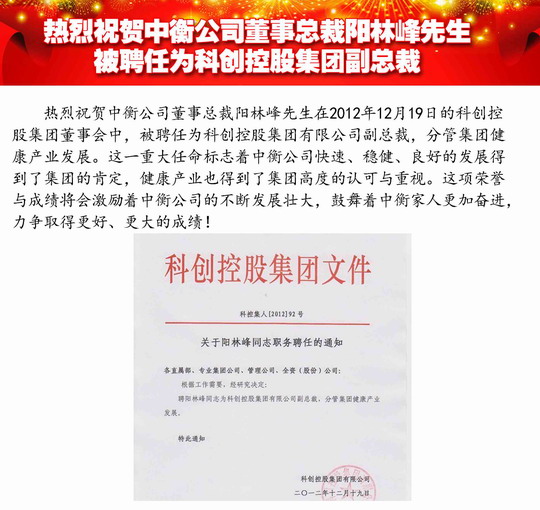 陽林峰被聘任為科創(chuàng)副總裁 分管集團健康產(chǎn)業(yè)