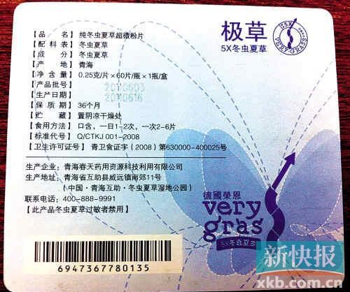 盡管因國家明令“禁止冬蟲夏草作為食品原料生產(chǎn)普通食品”,所以“極草5X”系列目前“大變臉”,把原來的許可證號“青衛(wèi)食證字(2008)第630000-400025號”變成了“青20100041”,但記者走訪其廣州多家專賣店發(fā)現(xiàn),該公司還是堂而皇之地把新舊兩個(gè)證號的產(chǎn)品放在一起賣,涉嫌違反國家規(guī)定。此外,對于極草冬蟲夏草純粉片系列產(chǎn)品,其銷售人員又給出了一種“中藥飲片”的身份,然而卻極力否認(rèn)屬于藥品。對于極草產(chǎn)品性質(zhì),充斥著種種模棱兩可的說法,不得不讓人產(chǎn)生眾多疑慮。