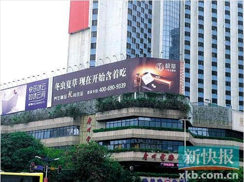 廣州最繁華的天河體育西路上,面對體育中心的黃金位置樹立著碩大的極草廣告牌。