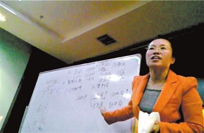去年12月23日,溫都水城舉行的三生公司市場推介會上,一名二星經(jīng)理在宣講獎金制度。本報記者雷軍攝